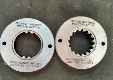 GO and NO-GO spline gauges that confirm to ISO, DIN, AGMA, and JIS standards. Spline gauges can be manufactured from 0.3Module to 6Module having diameter range varies from 5mm up to 500mm. Spline gage profiles include involute, serration, and parallel (straight or helical).